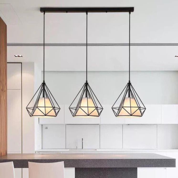 Chất liệu khung sắt sơn tĩnh điện bên trong khung đèn là chao vải màu trắng phản xạ ánh sáng tốt